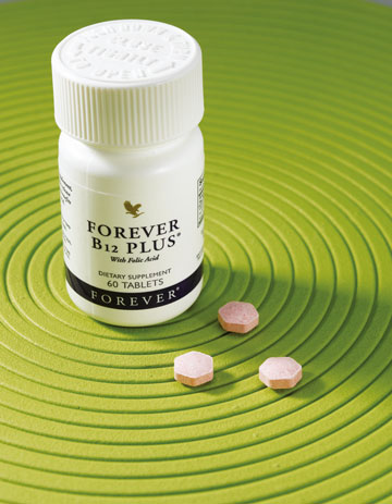Mit der Nahrungsergänzung FOREVER B12 Plus erhalten Sie eine Kombination aus Vitamin B12 und Folsäure und somit ein richtiges Power-Plus.Art. 188, Inhalt 60 Stück
