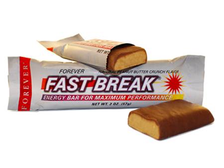 Der FOREVER Fast Break enthält in einem Riegel über 50 Prozent fast aller wichtigen Vitamine und Mineralstoffe des täglichen Bedarfs. Außerdem liefert er hochwertiges Eiweiß, wertvolle mehrfach ungesättigte Fettsäuren und sättigende Ballaststoffe.