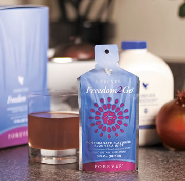 Eine ideale Kombination für Ihre Power und Ihr Wohlbefinden hat FOREVER mit seinem Produkt FOREVER Freedom2Go auf den Markt gebracht. Es vereint das Beste, was im FOREVER Freedom und im exotischen Granatapfel enthalten ist: die natürliche Kraft der Aloe Vera mit weiteren wichtigen Nährstoffen plus die Power des Granatapfels. Ein einzigartiger Mix mit einem leckeren exotisch-fruchtigen Geschmack. Einfach Fruchtkraft pur! Gönnen Sie sich den ultimativen Power-Cocktail bei Ihren Aktivitäten.